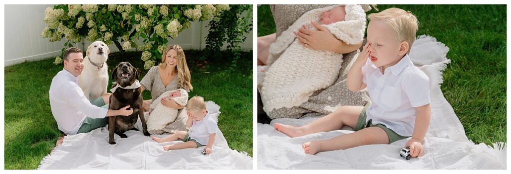 And then there’s this frame. Bless this child. The dog is absolutely losing his mind over something off-camera, the photographer (hi, that’s me) is trying to get everyone to look in the same general direction, and this toddler has the energy of someone who has been done with this situation for the past fifteen minutes. That face is saying I was promised a good time and instead I got this. I framed it perfectly and I would not change a single thing about it.